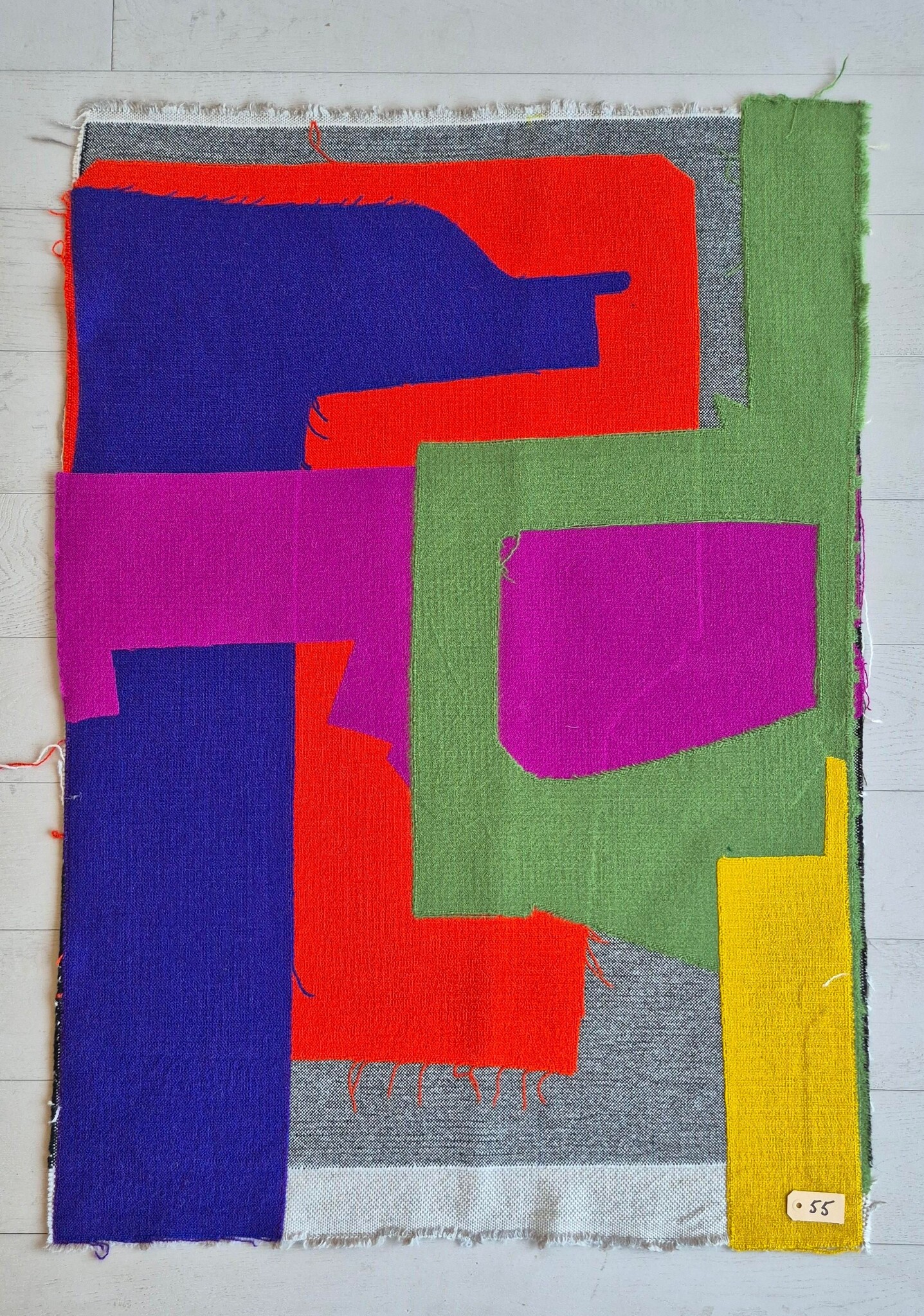Veel reststoffen uit de meubelindustrie hebben nog een mooie kwaliteit en kleur, maar worden meestal weggegooid. Christien Meindertsma verdeelt de restanten in twee soorten: de grillige passementen die overblijven bij het knippen van de stof en de laatste meters stof op een rol die niet meer te gebruiken zijn. De passementen worden afwisselend op de laatste meters ongebruikte stof gestapeld en vervolgens met naaldvilt tot een pakket gemaakt.