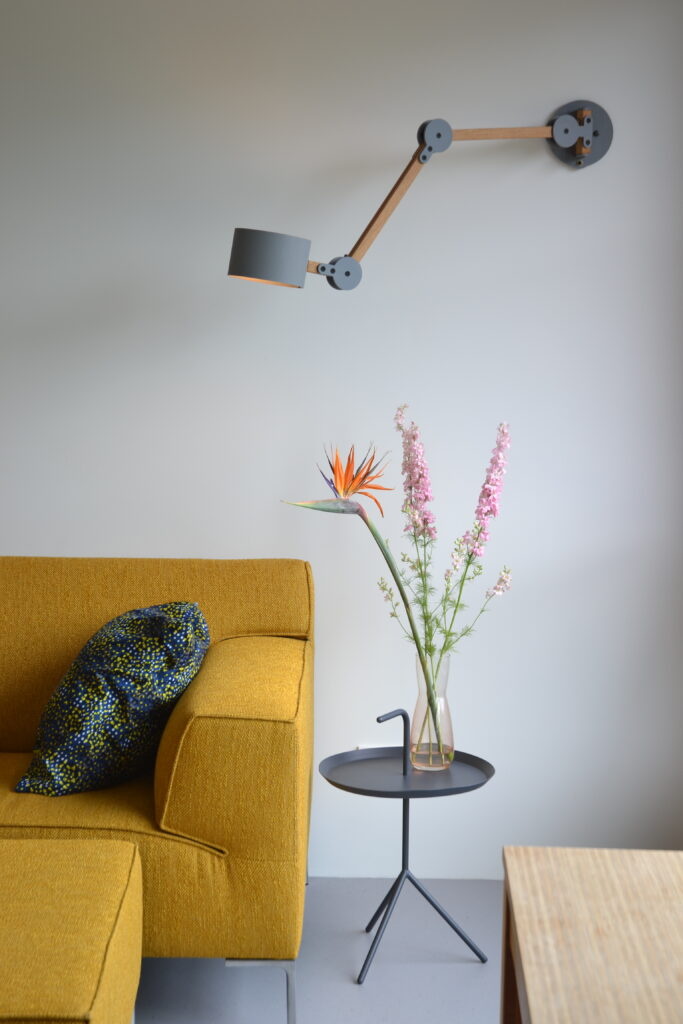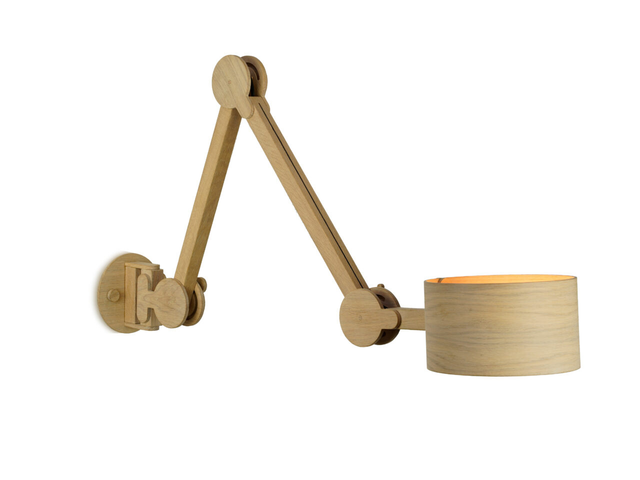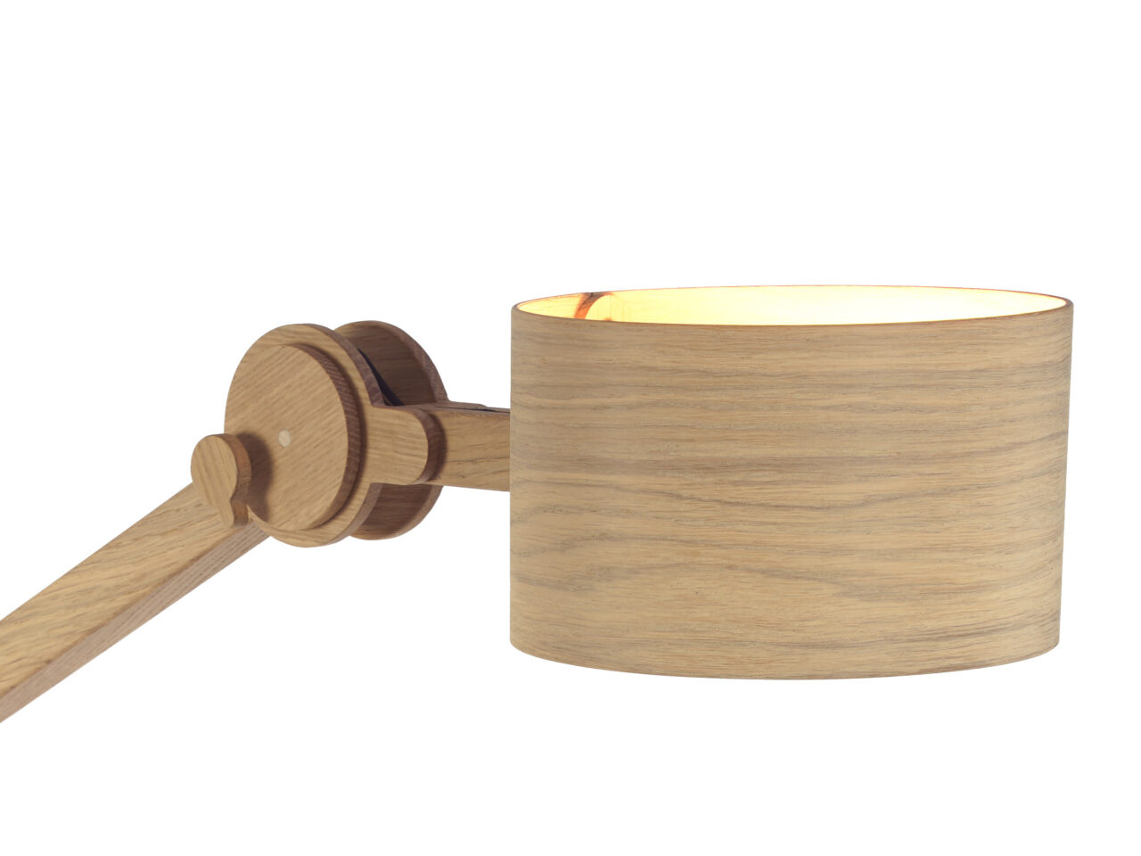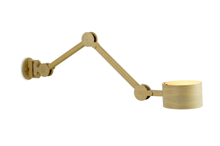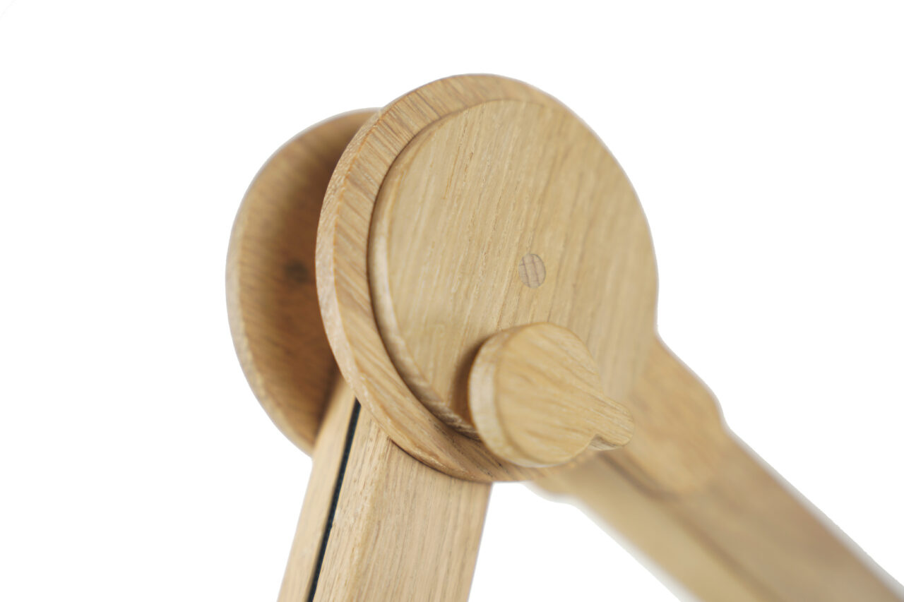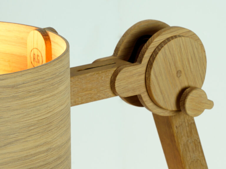 Vol enthousiasme en vriendelijkheid maakt Arend Groosman zijn collectie Circle Arc Lamps in zijn eigen atelier in Den Haag. Hij maakt het zichzelf niet te gemakkelijk maar zorgt er wel voor dat hij alles zelf kan produceren. Met een slim mechanisme zijn deze lampen van eiken en/of berken multiplex eenvoudig te verstellen en vast te zetten.