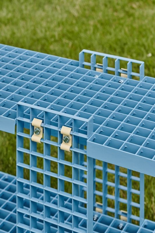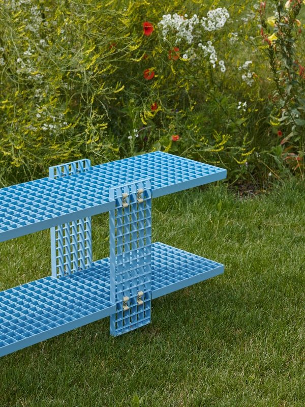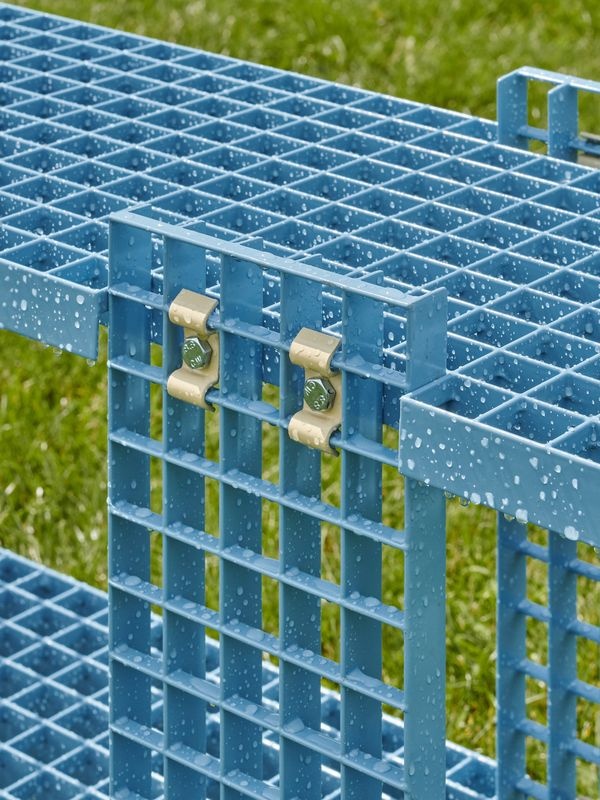 De GRID-collectie is vervaardigd uit restanten van gegalvaniseerde roosters die oorspronkelijk dienden als vloeren en veiligheidsbarrières in industriële gebouwen. Deze afgedankte elementen worden herbouwd tot meubelstukken, waarbij vorm en kleur zorgvuldig worden ingezet om nieuwe betekenis te geven. De objecten zijn gepoedercoat voor duurzaamheid en een zachtere uitstraling. De stukken zijn geschikt voor binnen- én buitengebruik.
