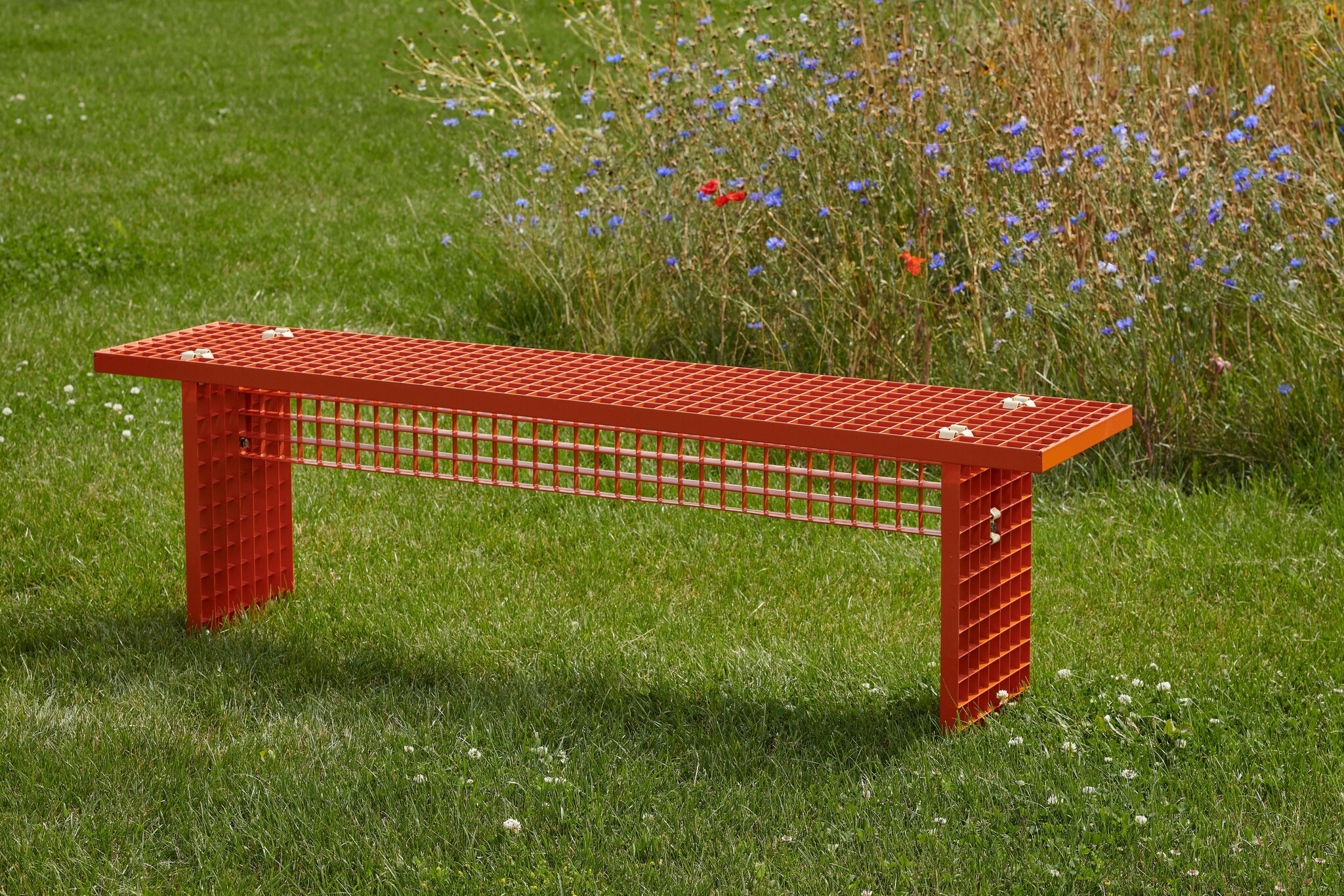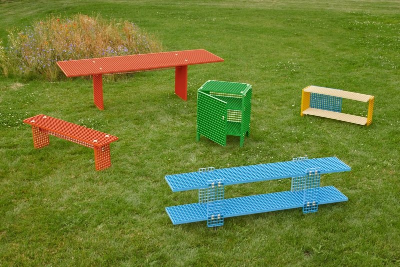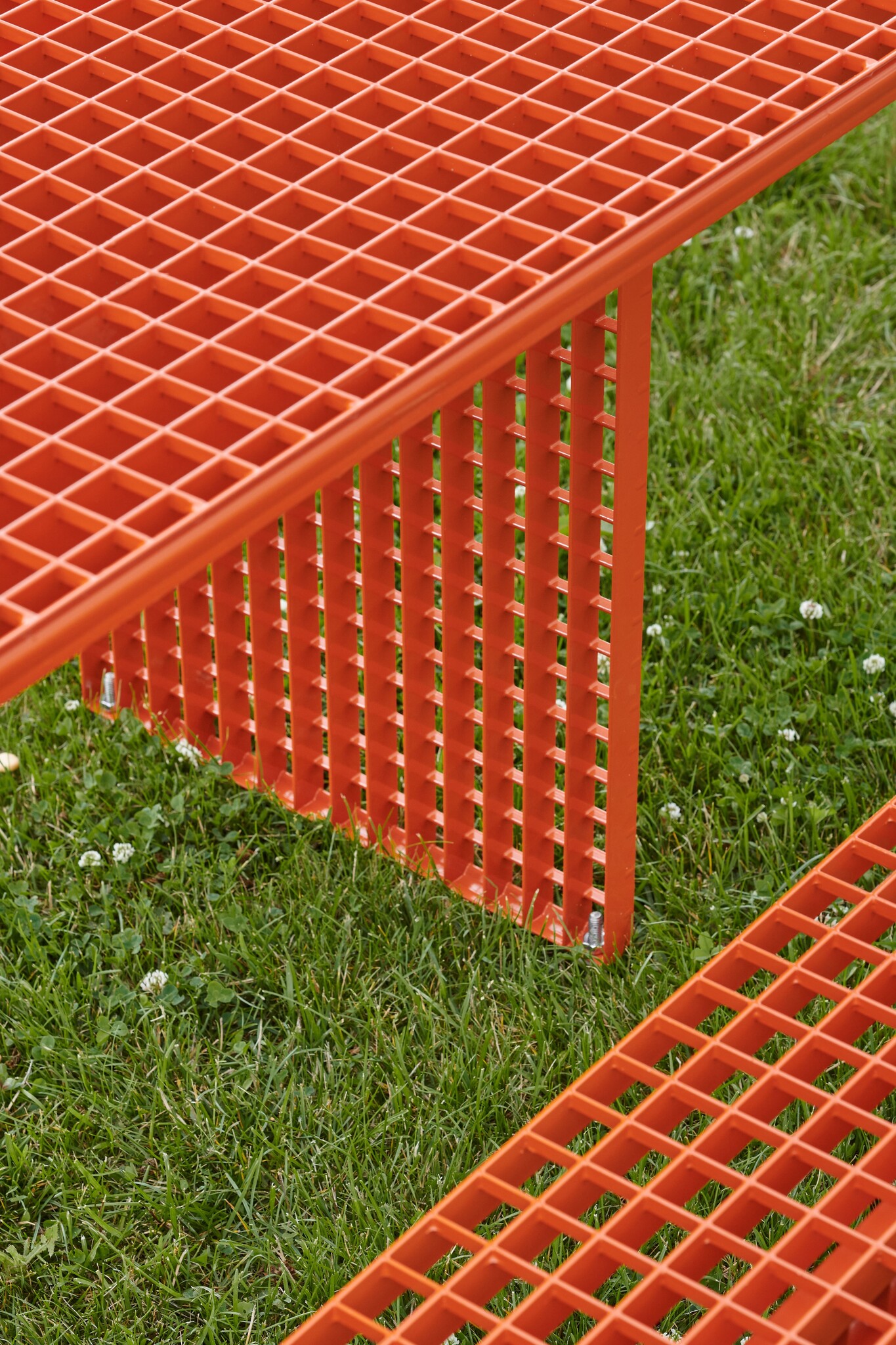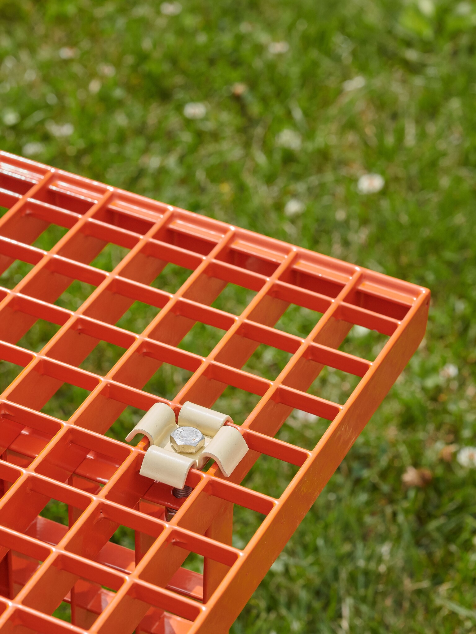 De GRID-collectie is vervaardigd uit restanten van gegalvaniseerde roosters die oorspronkelijk dienden als vloeren en veiligheidsbarrières in industriële gebouwen. Deze afgedankte elementen worden herbouwd tot meubelstukken, waarbij vorm en kleur zorgvuldig worden ingezet om nieuwe betekenis te geven. De objecten zijn gepoedercoat voor duurzaamheid en een zachtere uitstraling. De stukken zijn geschikt voor binnen- én buitengebruik.