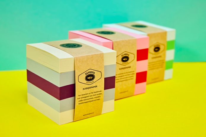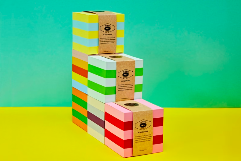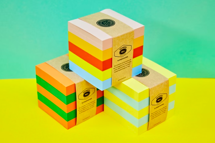 Bij vrijwel elk hardcoverboek dat wordt gemaakt, wordt het omslag verbonden aan het binnenwerk met een schutblad: papier in de mooiste kleuren kleuren en van zeer hoge kwaliteit. Maar er blijft natuurlijk altijd wel iets over. Daar zijn deze memoblocks van gemaakt