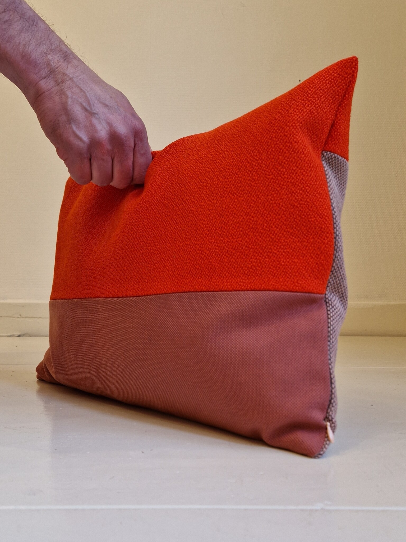 Stoffenfabrikant Kvadrat heeft een grote collectie stoffen. Veel meubels in onze winkel zijn met Kvadrat stoffen gestoffeerd. Van ieder stoftype is een royale staalbundel beschikbaar. Hoewel de collectie van Kvadrat vrij stabiel is, verdwijnen sommige stoftypen uit de collectie. Kvadrat verzamelt de bundels voor ons. Ontwerper Jantien Baas maakt daar dan weer mooie combinaties van voor deze kussens. Van ieder kussen is er dus maar een beschikbaar, allen anders.