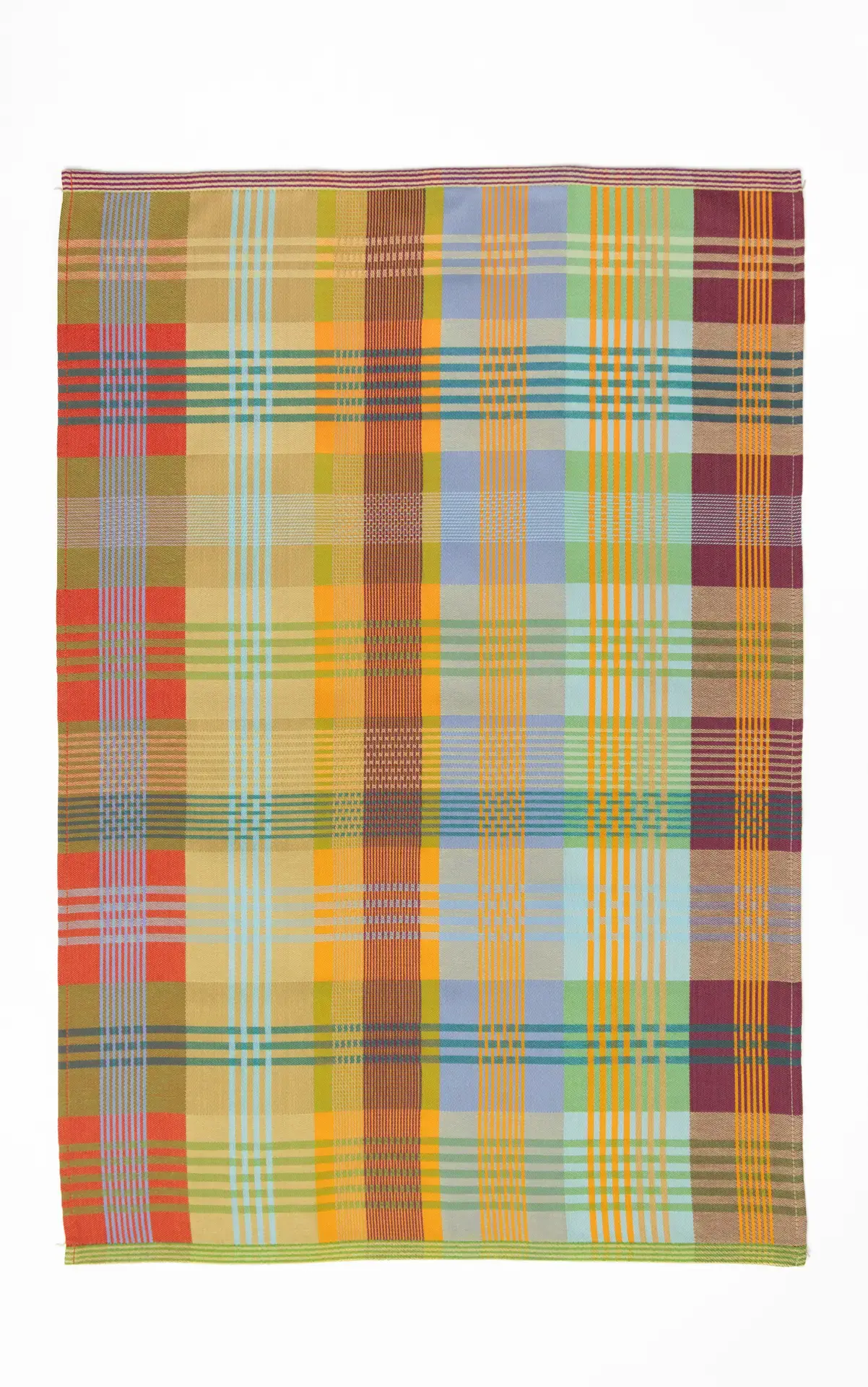 Deze theedoeken zijn gemaakt van restjes uit de industrie. Wanneer fabrieken garens verven om textiel te weven, maken ze wat extra - voor het geval dat - maar die blijven vaak ongebruikt. Foekje Fleur gebruikte deze restanten voor haar Odds & Ends textiel waardoor onverwachte kleurencombinaties ontstaan.