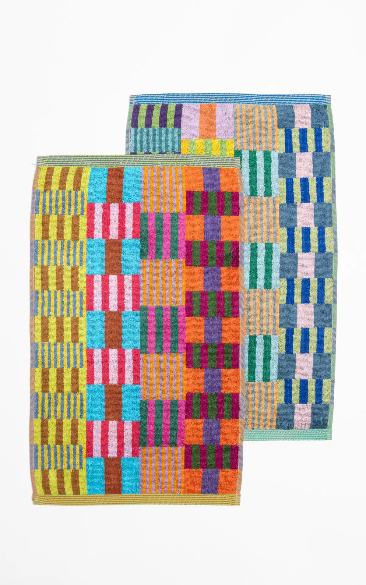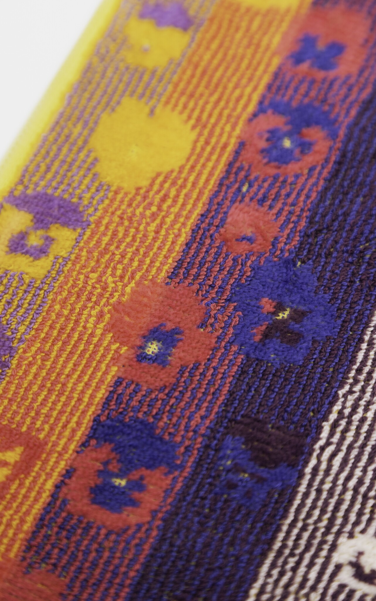 Deze gastendoekjes zijn gemaakt van restjes uit de industrie. Wanneer fabrieken garens verven om textiel te weven, maken ze wat extra - voor het geval dat - maar die blijven vaak ongebruikt. Foekje Fleur gebruikte deze restanten voor haar Odds & Ends textiel waardoor onverwachte kleurencombinaties ontstaan.