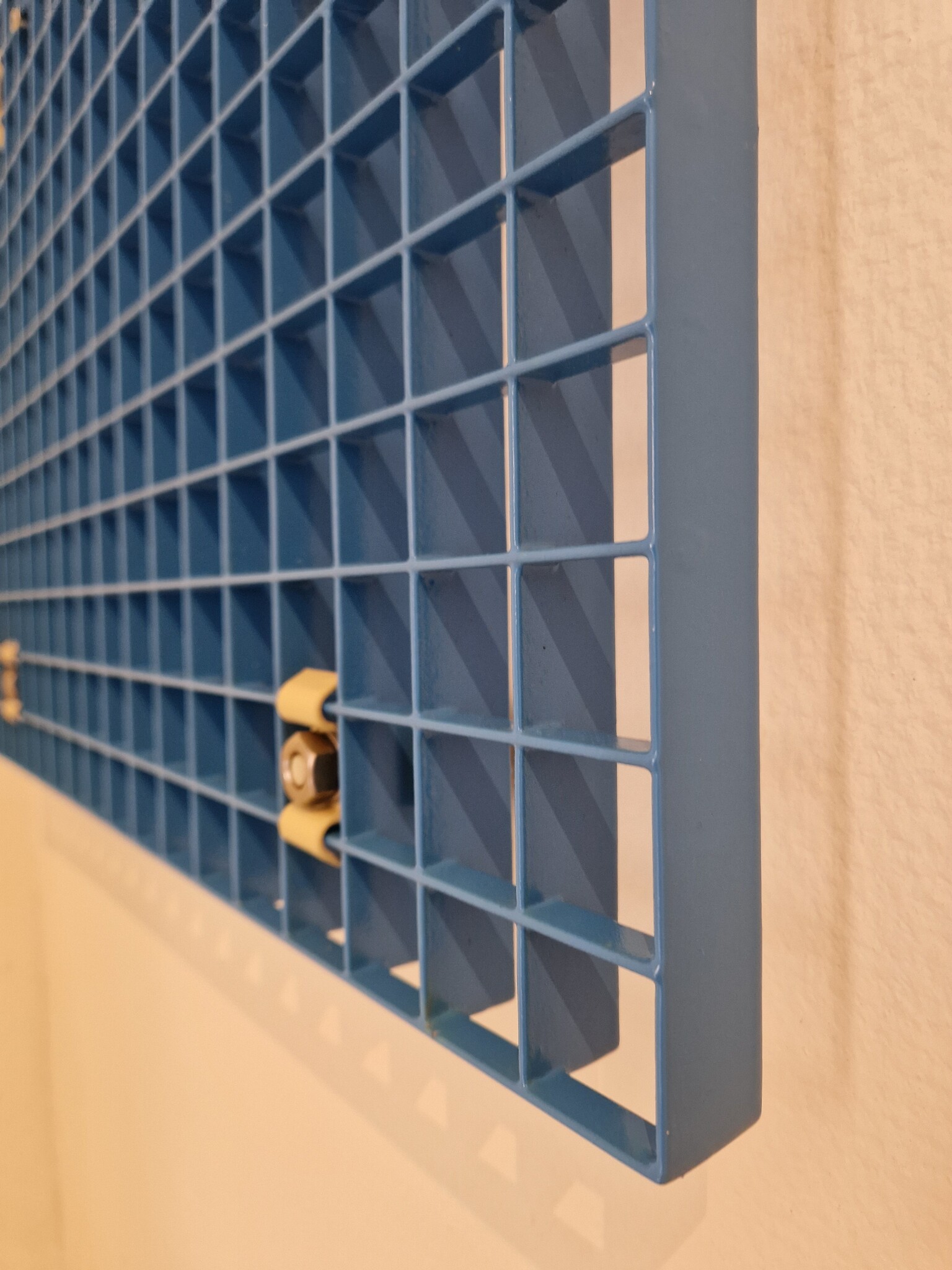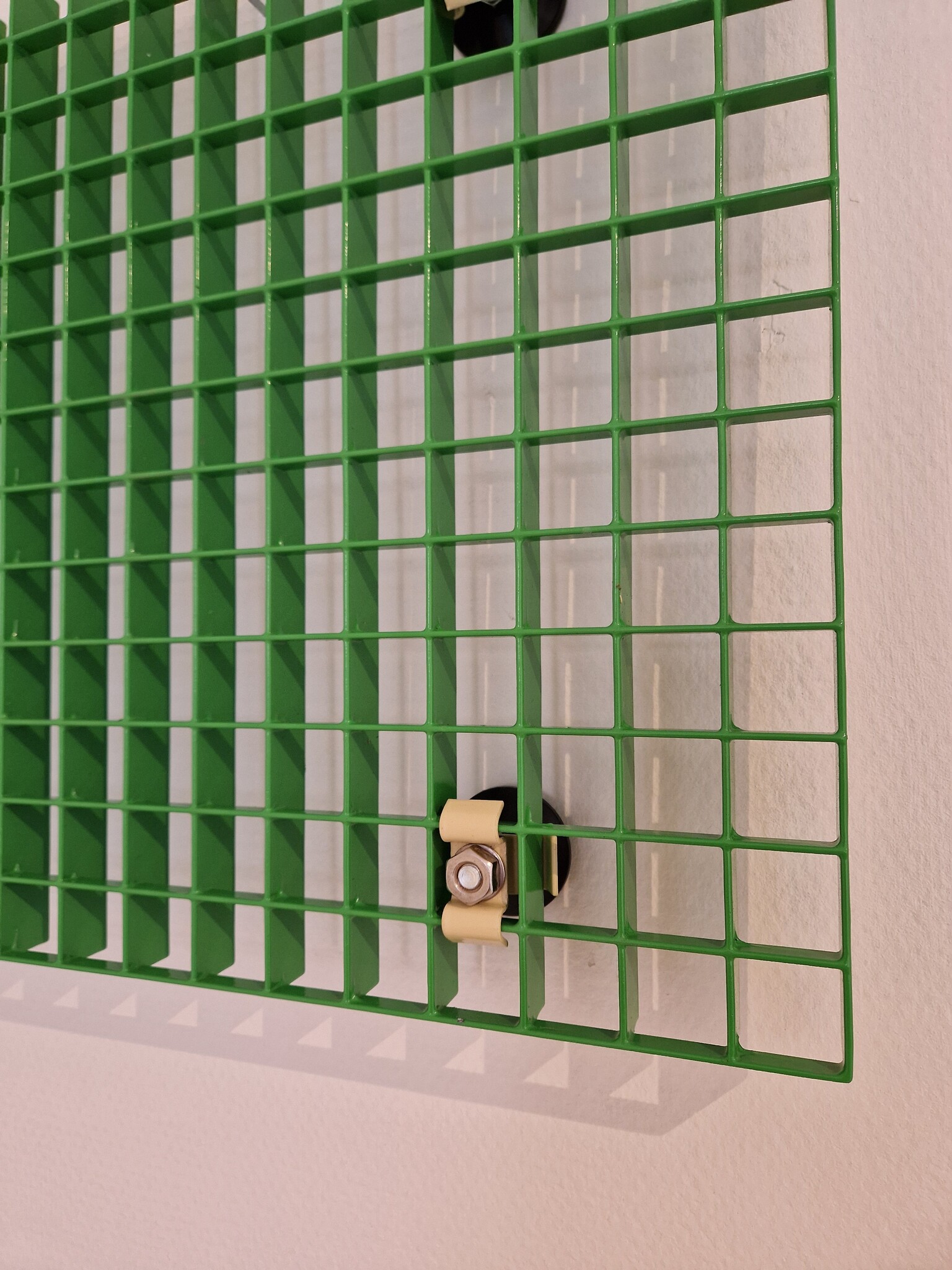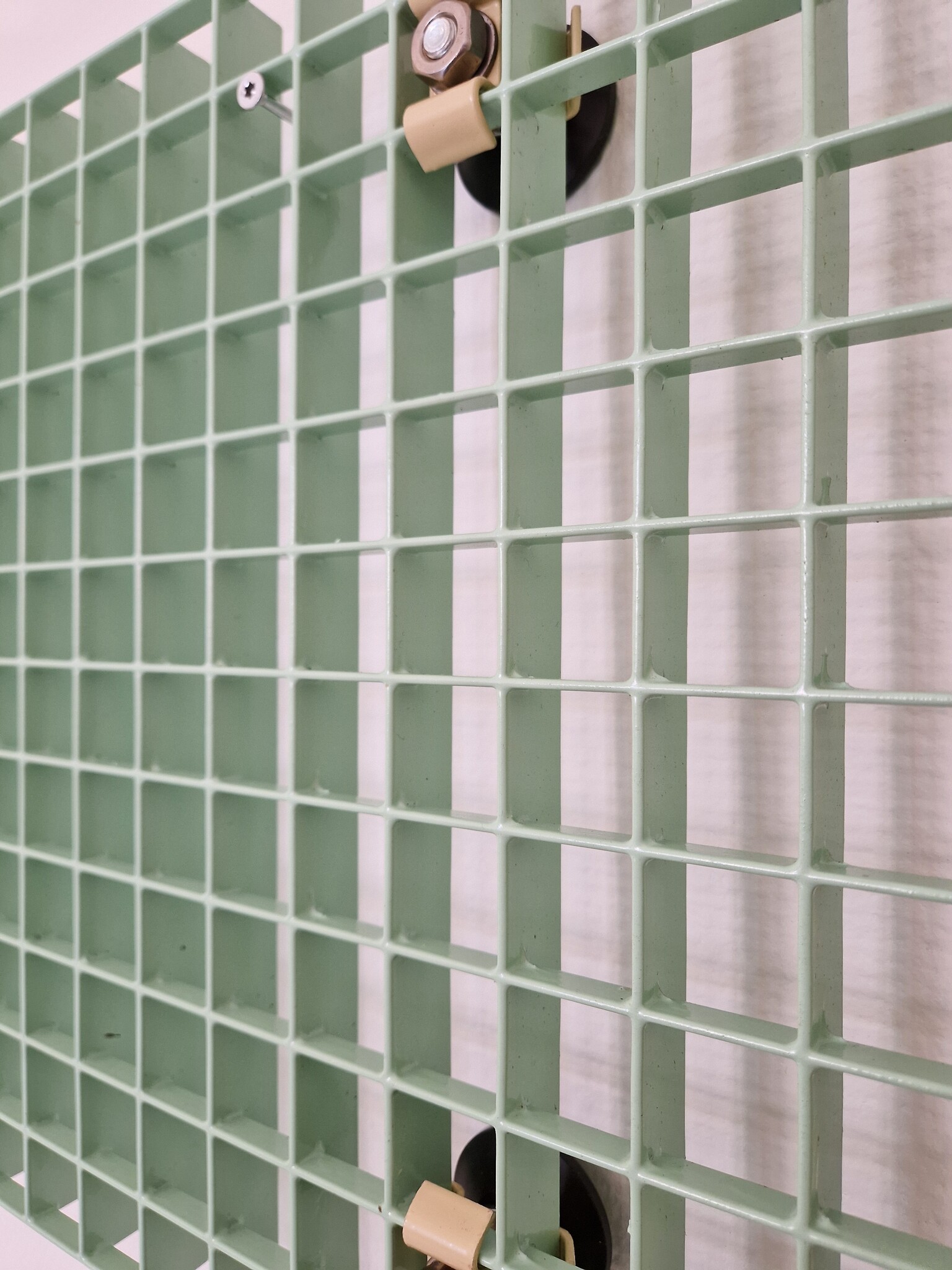 De GRID-collectie is vervaardigd uit restanten van gegalvaniseerde roosters die oorspronkelijk dienden als vloeren en veiligheidsbarrières in industriële gebouwen. Deze afgedankte elementen worden herbouwd tot meubelstukken, waarbij vorm en kleur zorgvuldig worden ingezet om nieuwe betekenis te geven. De objecten zijn gepoedercoat voor duurzaamheid en een zachtere uitstraling. De stukken zijn geschikt voor binnen- én buitengebruik.