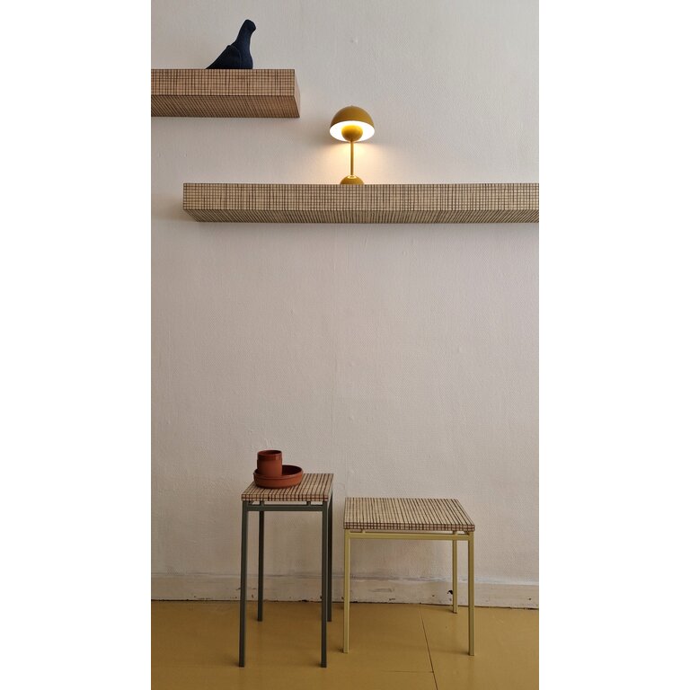 Von Schönhausen maakt meubels met object- en handmatige kwaliteit. Zoals bijvoorbeeld een  tafeltje of een wandplank, waarvan ieder lijntje bewust met de hand getrokken is; als afzonderlijke draadjes in een weefsel.